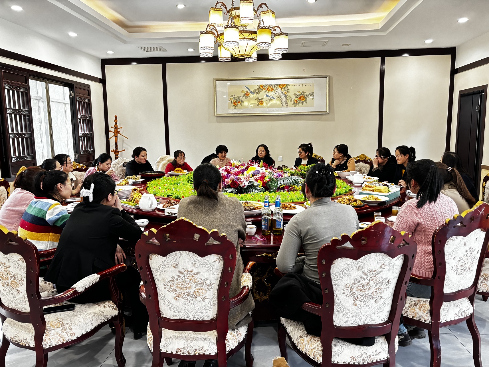 中午,公司還組織了聚餐活動。各位女神舉杯共飲,歡聲笑語映襯出溫馨的氛圍?偨(jīng)理徐宏女士祝愿大家都能不斷提升自我,展現(xiàn)自我魅力,做自己的女王!